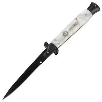 8.75 Inch Black Italian Stiletto Switch Pocket Knife Black Pearl