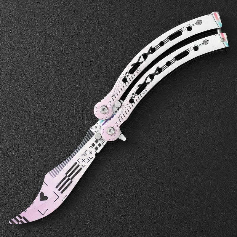 Perfektionieren Sie Ihre Flip-Moves mit Stil mit unserem CSGO Butterfly-Trainermesser oder nutzen Sie es für Kampfsport-Auftritte. Mit diesem farbenfrohen Trainer sehen Sie in jedem Fall großartig aus. Es verfügt über eine 11,6 cm lange Edelstahlklinge in meisterhaftem Design in Fotoqualität. Die Griffe bestehen aus Edelstahl mit passenden Harzeinsätzen. Der farbenfrohe Butterfly-Trainer ist 24,5 cm lang, im geschlossenen Zustand 15 cm lang und verfügt über einen sicheren Griffverschluss.