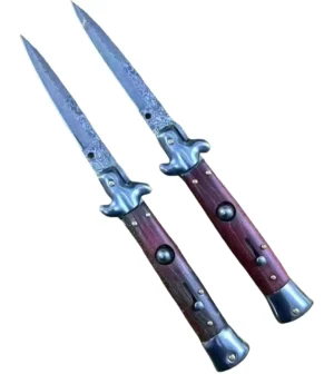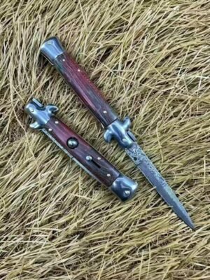 OTF Messer 8,75 Zoll Italienisches Stiletto Messer Kris Blade Springmesser mit Rotem Holzgriff
