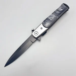 Stiletto-Klappmesser 7,6 cm, 2,85 mm dicke Klinge, Edelstahl Schwarze Spearpoint-Klinge 10 cm geschlossen Perlmutt-Griff Inklusive Taschenclip